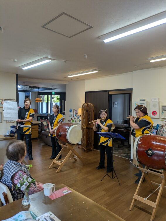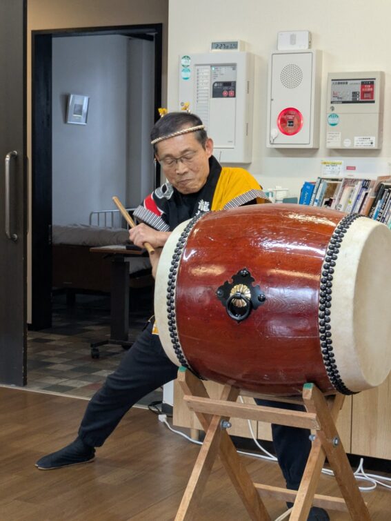 大迫力の太鼓の音にビックリされる方もいましたが、普段はあまり笑はない利用者さんの満面の笑みを